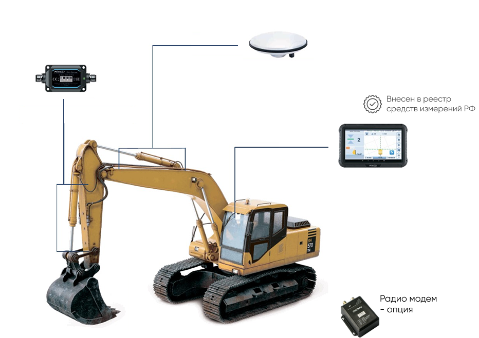 - Подходит на все стандартные (в базе) и наклонные ковши (с доп. датчиком).