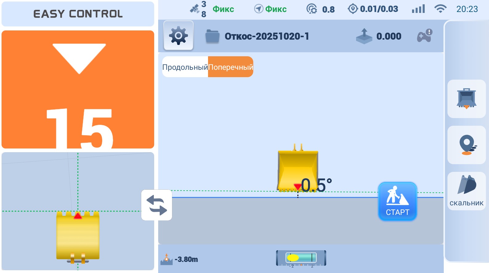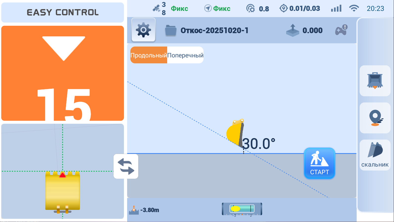 Машинист контролирует проектные отметки самостоятельно, без геодезиста
